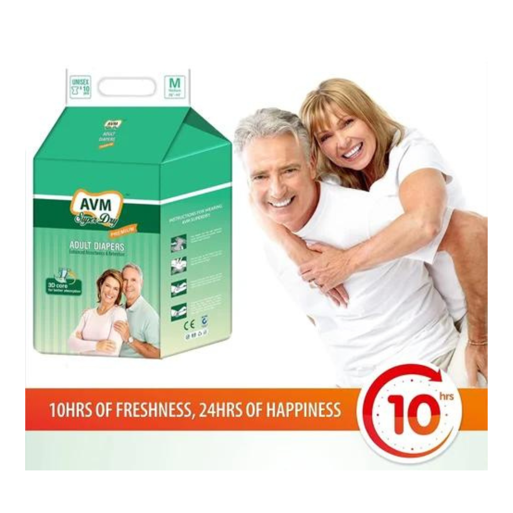 Each pack contains 10 AVM Diapers in sizes L and XL, providing exceptional comfort and absorbency for individuals with incontinence. Designed for single-use, these diapers feature a premium softness and advanced absorbent technology for maximum leakage protection. Trusted by caregivers and healthcare professionals, AVM Diaper Premium ensures confidence and comfort for users.